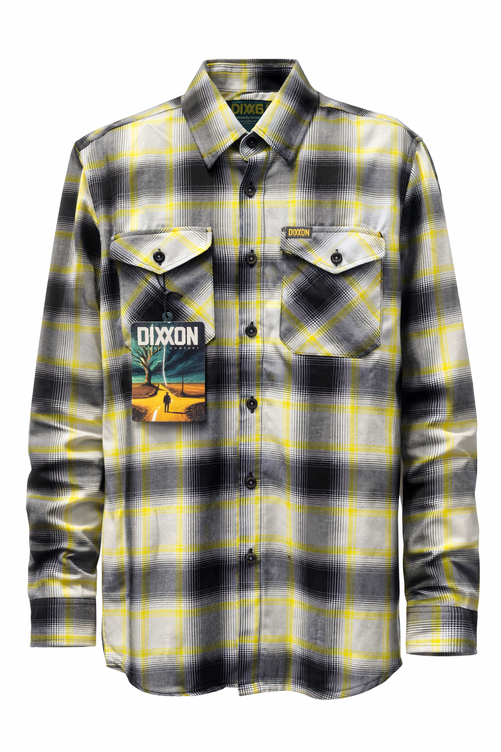 - Dixxon brand tag on the left chest pocket